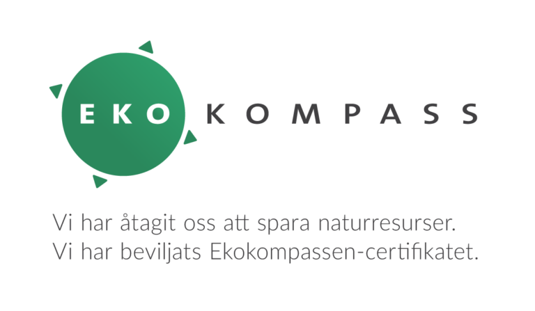 - I början av år 2023 tog vi i bruk Ekokompassi-miljöprogrammet, med vilket vi kan utreda vår ansvarsfullhet och uppfölja hur våra målsättningar förverkligas. Vi beviljades Ekokompassi-miljösertifikatet 18.8.2023 efter att vi uppfyllde alla behövliga 10 kriterier.